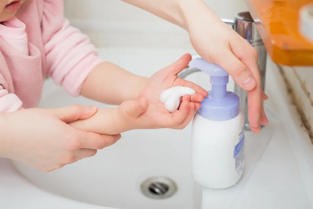 勤洗手,家长外出回家后先洗手再抱宝宝;